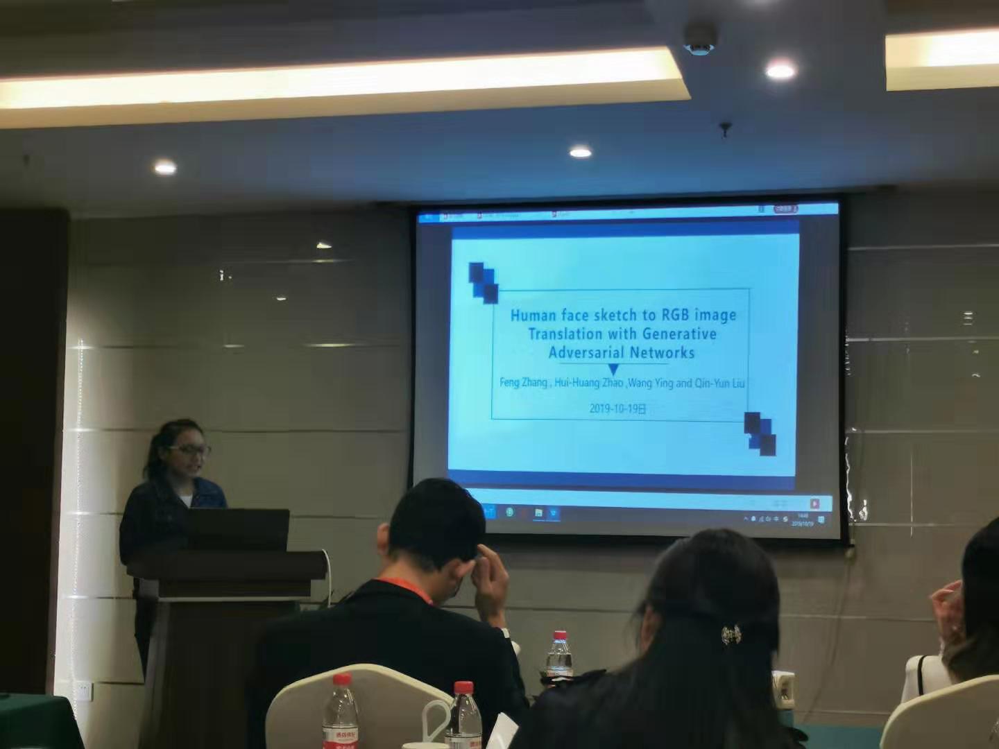 365官网赵辉煌老师指导的2019级硕士生张丰同学的科研论文《Human face sketch to RGB image Translation with Generative Adversarial Networks》被国际会议International Conference on Computer Engineering and Networks录用,于10月19日参加在长沙召开的会议,并作会议发言,对论文研究的成果进行了介绍。