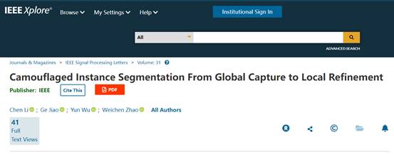 近日,beat365官方网站2021级电子信息专业研究生李臣以第一作者在SCI二区期刊IEEE Signal Processing Letters(影响因子:3.9)发表研究论文,论文题目为《Camouflaged Instance Segmentation from Global Capture to Local Refinement》。