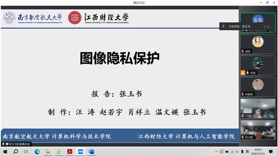 2024年12月1日晚8:00,南京航空航天大学张玉书教授应邀为beat365官方网站师生开展了一场题为“图像隐私保护”的学术报告。报告会在腾讯会议上召开,由李浪院长主持,beat365官方网站部分老师及研究生聆听了本次报告。