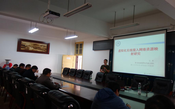 邹赛博士从虚拟化的无线接入网架构出发,对虚拟化异构无线接入网络资源映射技术做了详细的介绍,并针对业务与虚拟网络功能的逻辑映射,对如何实现业务逻辑与虚拟化网络功能相匹配,实现业务功能的“量体裁衣”以及基础设施最大化利用等问题进行了深入地探讨。邹博士的报告深入浅出,向我们展示了一流学术研究的方法与理论。会上,邹博士还与在场师生就自动化管理的识别决策树策略等相关内容进行了深入的交流与探讨。