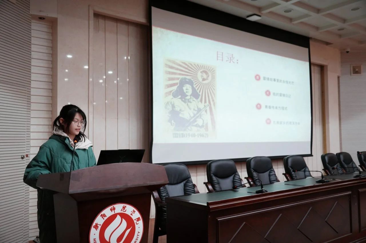 在“讲述故事”环节,三位学子声情并茂地从不同视角诠释雷锋精神的时代内涵。文佳薏同学结合雷锋日记生动地讲述了雷锋故事,并结合寒假期间自身基层社会实践和云支教志愿服务活动分享了践行雷锋精神的感悟:学习雷锋精神不是口号,而是日常中一次次伸手的温度。何嘉怡同学从雷锋经典故事与名言切入,“一滴水放进大海才永不干涸”,一个人只有当他把自己和集体事业融合在一起的时候才能最有力量,而师范专业学生的价值,在于将个人理想汇入教育强国的浪潮。最后,宋妍同学以“全国劳动模范”黄厚瑜老人扎根边疆教育60年的事迹为引,叩问师范初心:“黄厚瑜老人用一生诠释了‘哪里需要就扎根哪里’的信念,作为未来教师,我们更需将雷锋精神融入教育使命,成为学生心中的那束光。”她们的讲述赢得了台下阵阵热烈的掌声,也让雷锋精神如同一颗颗火种,在同学们心中生根发芽。