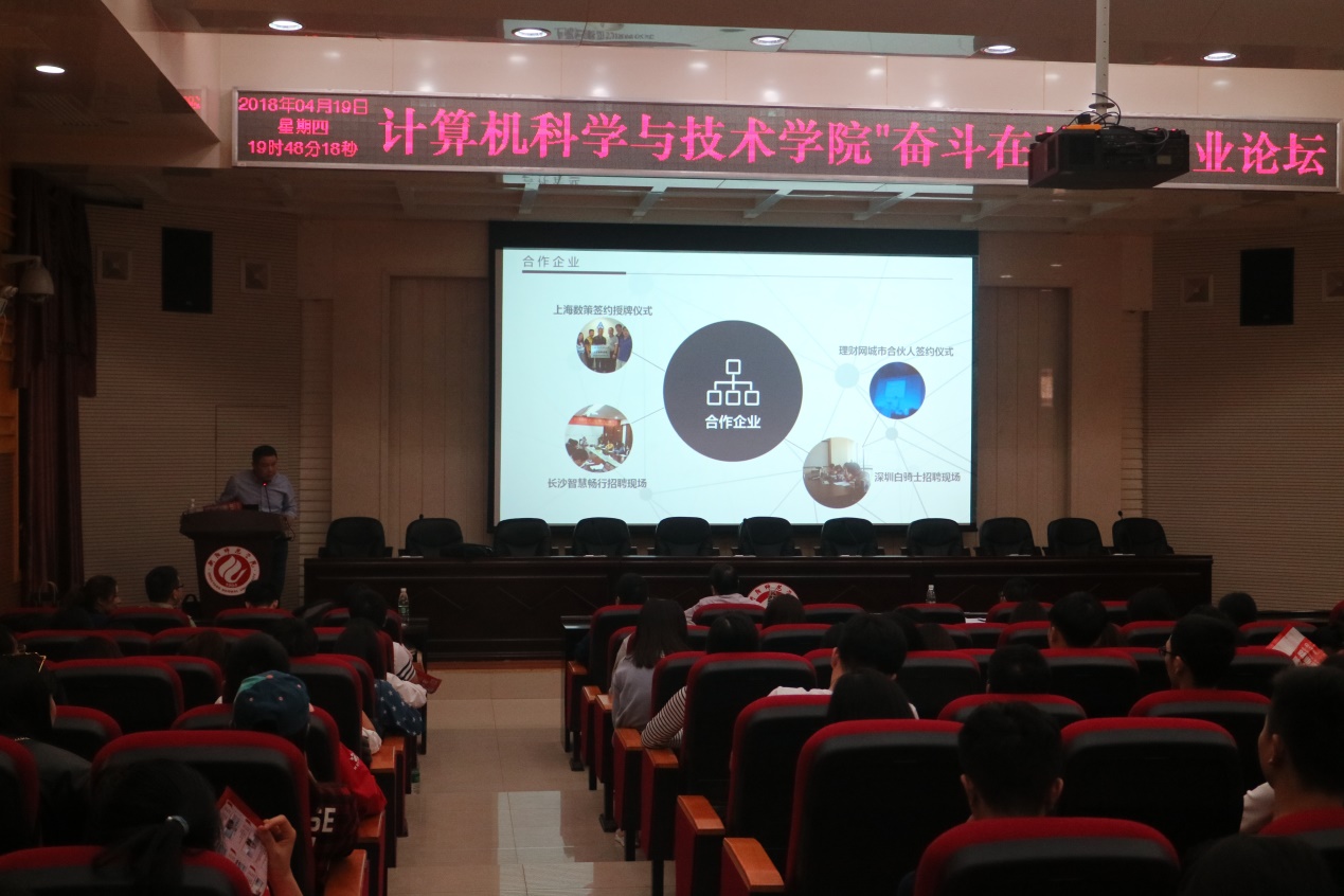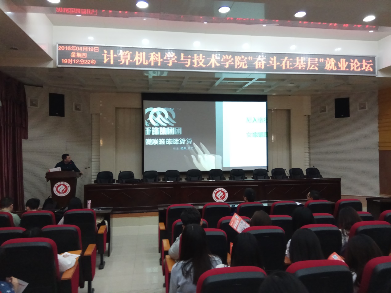 4月19日晚7点,beat365官方网站“奋斗在基层”就业论坛在外语楼311召开,学院党总支书记陈洪清、院长李浪、副书记彭正、副院长郑光勇、辅导员徐峰、谢媛、匡娟丽,北京千峰教育集团大区总监肖总和云计算事业部杨总、湖南源辰科技公司刘总、北京尚学堂科技公司湖南区HR彭总和全院近200名学生参与了此次论坛,本次论坛由党总支书记陈洪清主持。