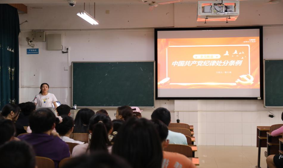 为深入学习贯彻习近平总书记关于党的自我革命重要论述精神和《中国共产党纪律处分条例》(以下简称《条例》),扎实开展党纪学习教育,推进党纪学习教育走深、走实、走细,增强全体学生党员的思想自觉、政治自觉和行动自觉,5月16日16:00,365官网研究生党支部书记陈小燕、本科生党支部书记曾振华分别在计科楼211教室和215教室为本科生、研究生党员们讲授了党纪学习教育专题党课。
