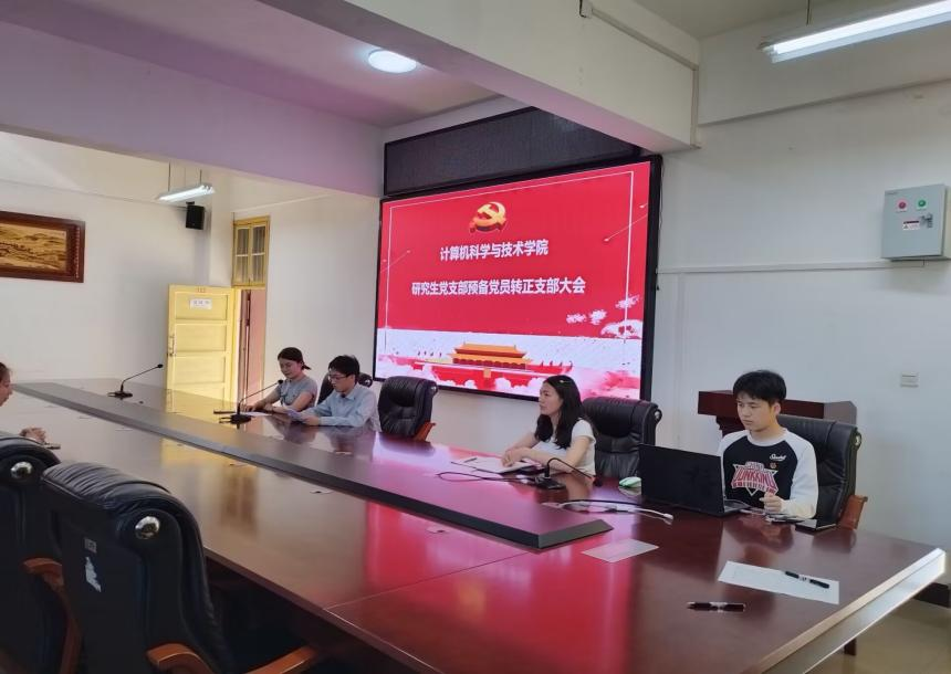 13日15:00,研究生党支部预备党员转正支部大会在计科楼312会议室举行。会议上,预备党员何晨辰汇报了本人在预备期间的表现情况。接着,支部委员、与会党员讨论、报告何晨辰在预备期间的教育和考察情况,认为何晨辰同志思想、学习、工作等方面均符合中共正式党员条件,可以按期转正。