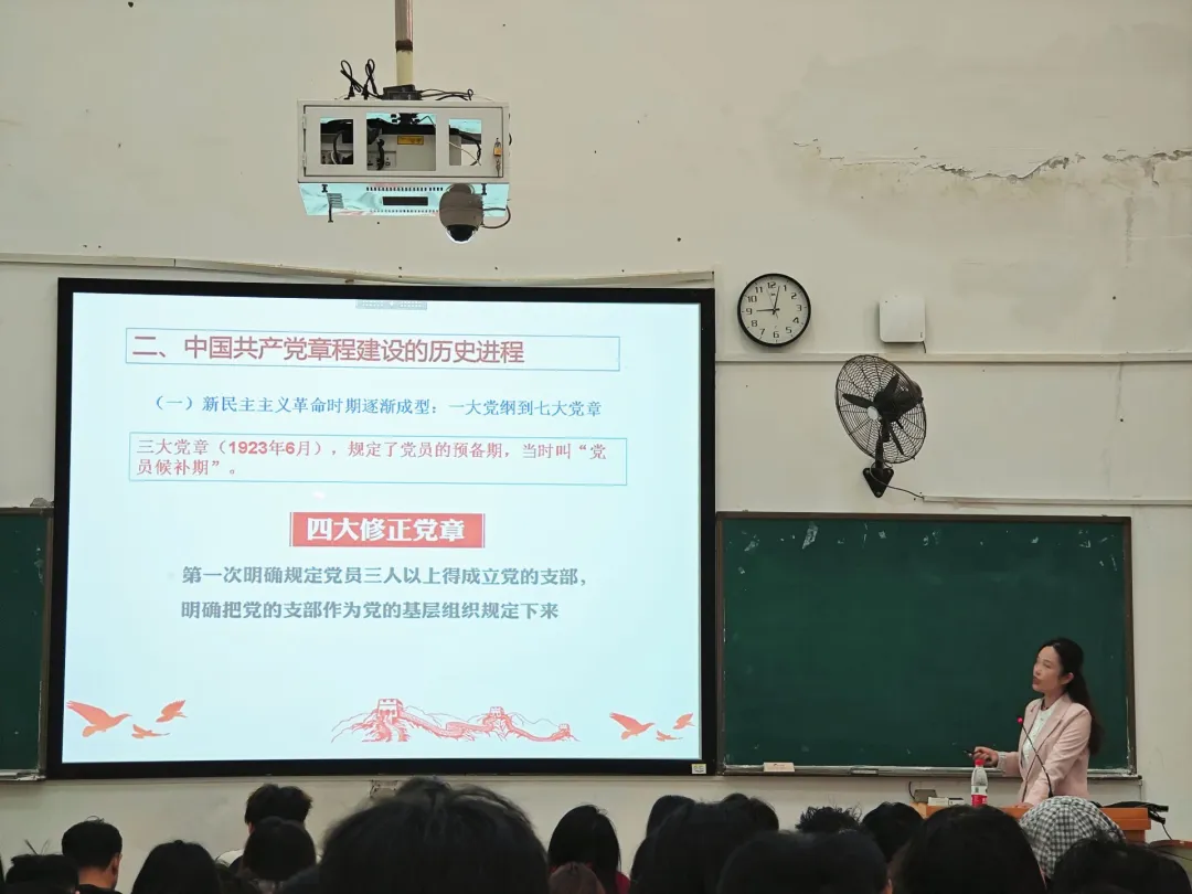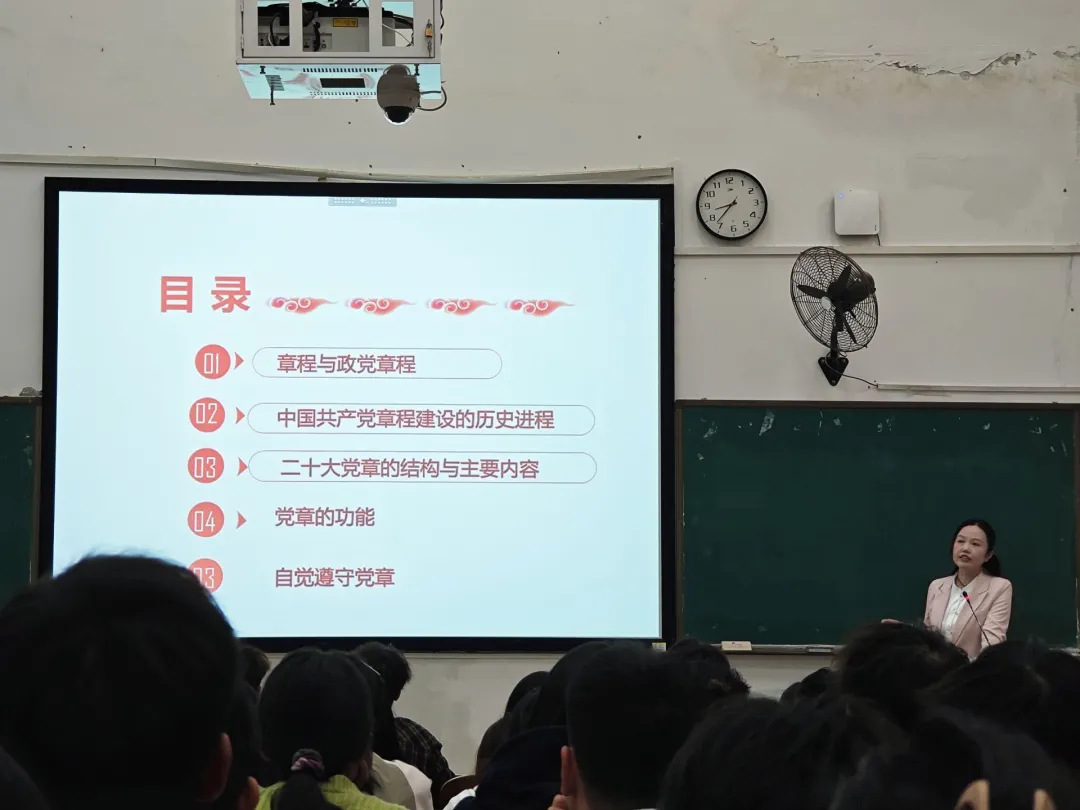 党课伊始,唐艳委员通过与入党积极分子的深入讨论,阐释了“章程”这一概念,进而引出党章的核心地位。党章作为党的根本大法,不仅是全面从严治党的总依据,也是党的建设和全部活动的基准,对于入党积极分子来说,学习党章是加强党性修养、提高政治觉悟、增强党性意识的重要途径。唐艳委员着重强调,学习党章,既要深入学习现行党章的内容,又要充分了解党章的发展历史,从历史和现实相结合中领悟党章发展的历史规律。同时,学习过程中要将党章同党的二十大精神紧密结合起来,与习近平新时代中国特色社会主义思想深度融合。