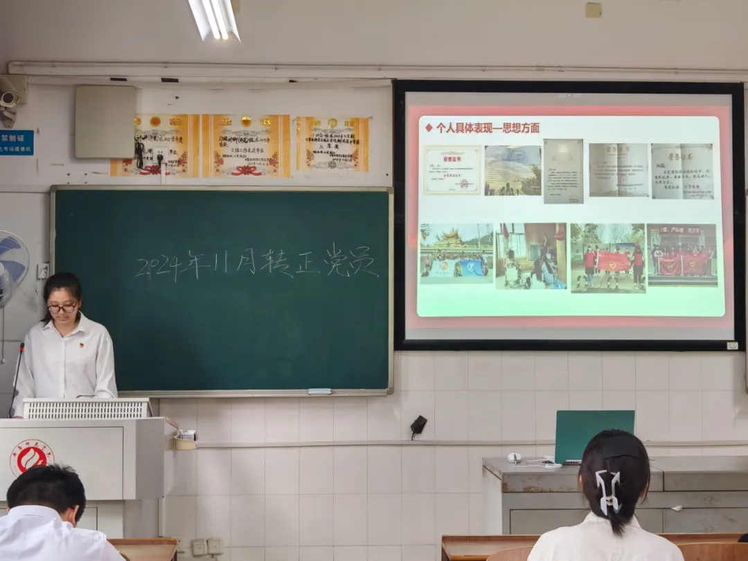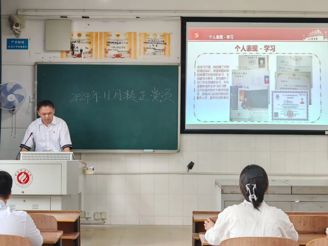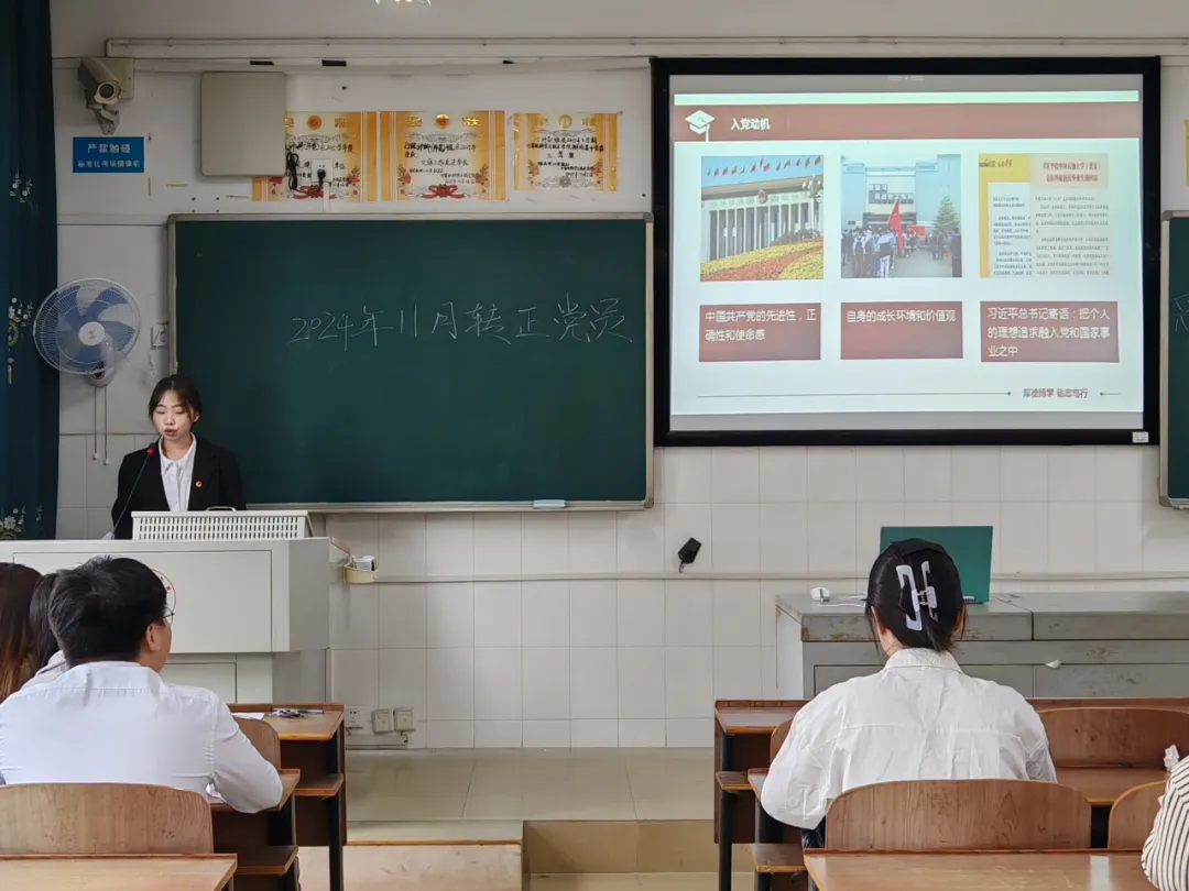 谈话结束后,预备党员们依次进行思想汇报和现场答辩。他们真诚地分享了一路走来的经历以及在党组织悉心培养下内心的深刻感受和成长收获。在这一环节中,能深刻感觉到每一位预备党员在思想上的成长以及对党组织深深的热爱与忠诚。在紧张的现场答辩环节,预备党员们以扎实的知识基础和积极向上的态度出色地完成了答辩,展现出了较高的政治素养和应变能力。