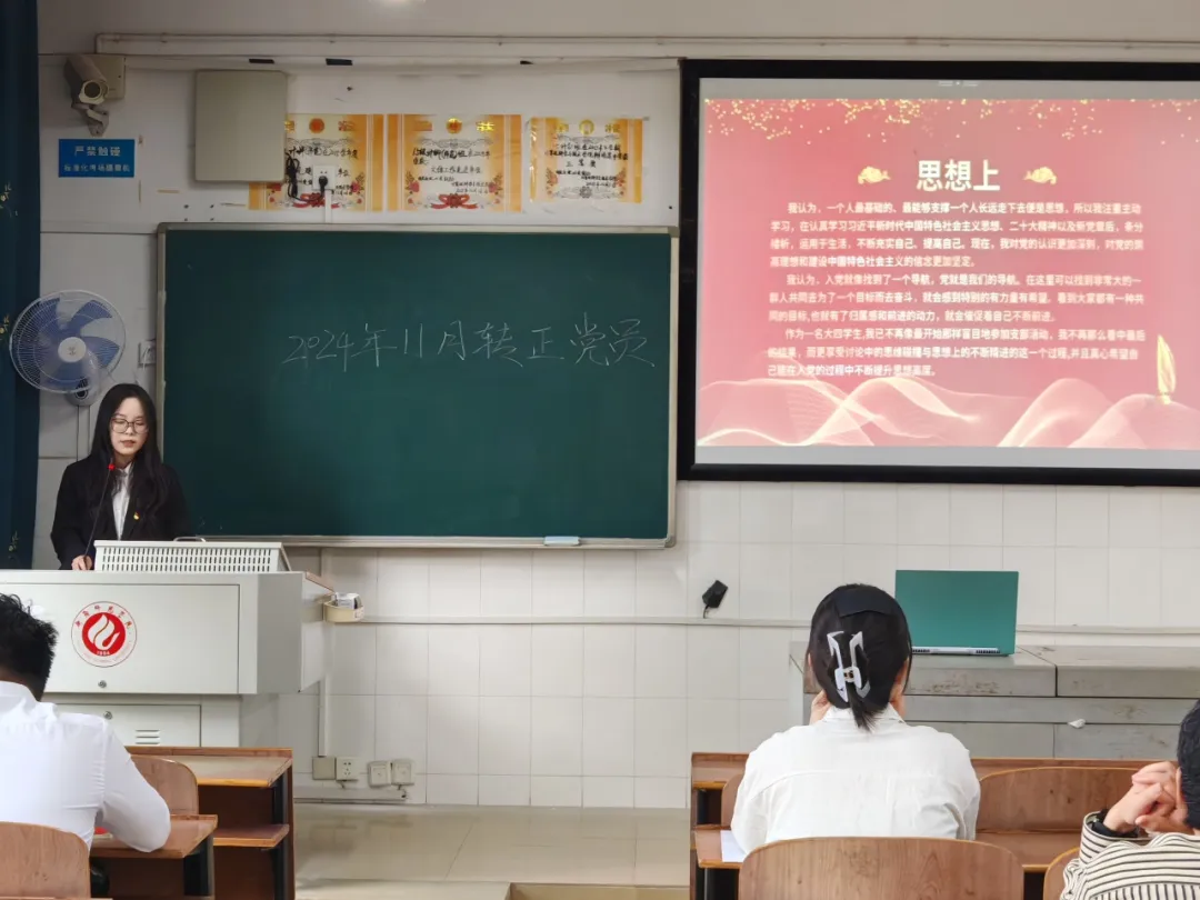 11月15日14:30,beat365官方网站转正党员思想汇报暨答辩会在理科楼二栋205教室召开,此次会议旨在深入了解预备党员的思想状况,检验其政治素养,同时加强党组织的凝聚力。365官网研究生党支部书记陈小燕、本科生党支部书记曾振华以及13名转正党员、23名学生党员参加了此次会议。