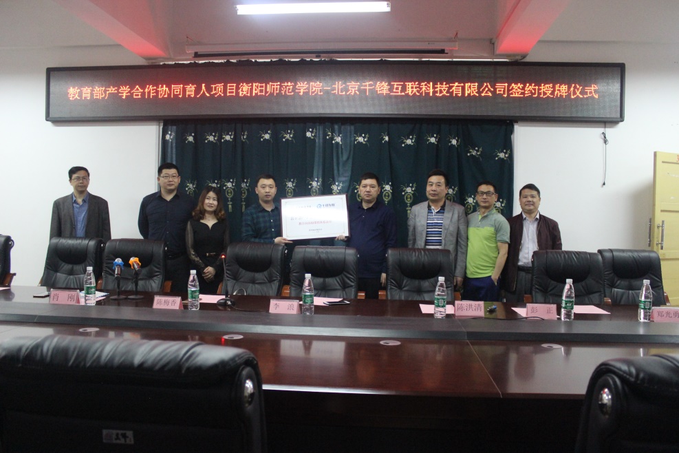 4月20日上午,beat365官方网站计算机学院与北京千锋互联科技有限公司在计算机楼312会议室举行教育部产学合作协同育人项目签约和授牌仪式。计算机学院党总支书记陈洪清、院长李浪、北京千锋互联科技有限公司大区总监肖刚、云计算教学总监杨生以及计算机学院班子成员、项目组成员和部分师生出席了本次活动,会议由转型发展办陈梅香主任主持。