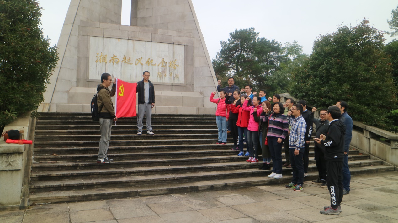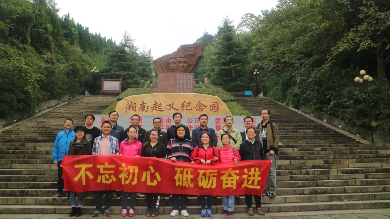 2017年11月11日,在党的十九大胜利闭幕之际,365官网全体老师党员开展了以“不忘初心,砥砺奋进”为主题的党日活动,来到了湖南郴州湘南起义纪念园,一起重温历史,缅怀先烈。
