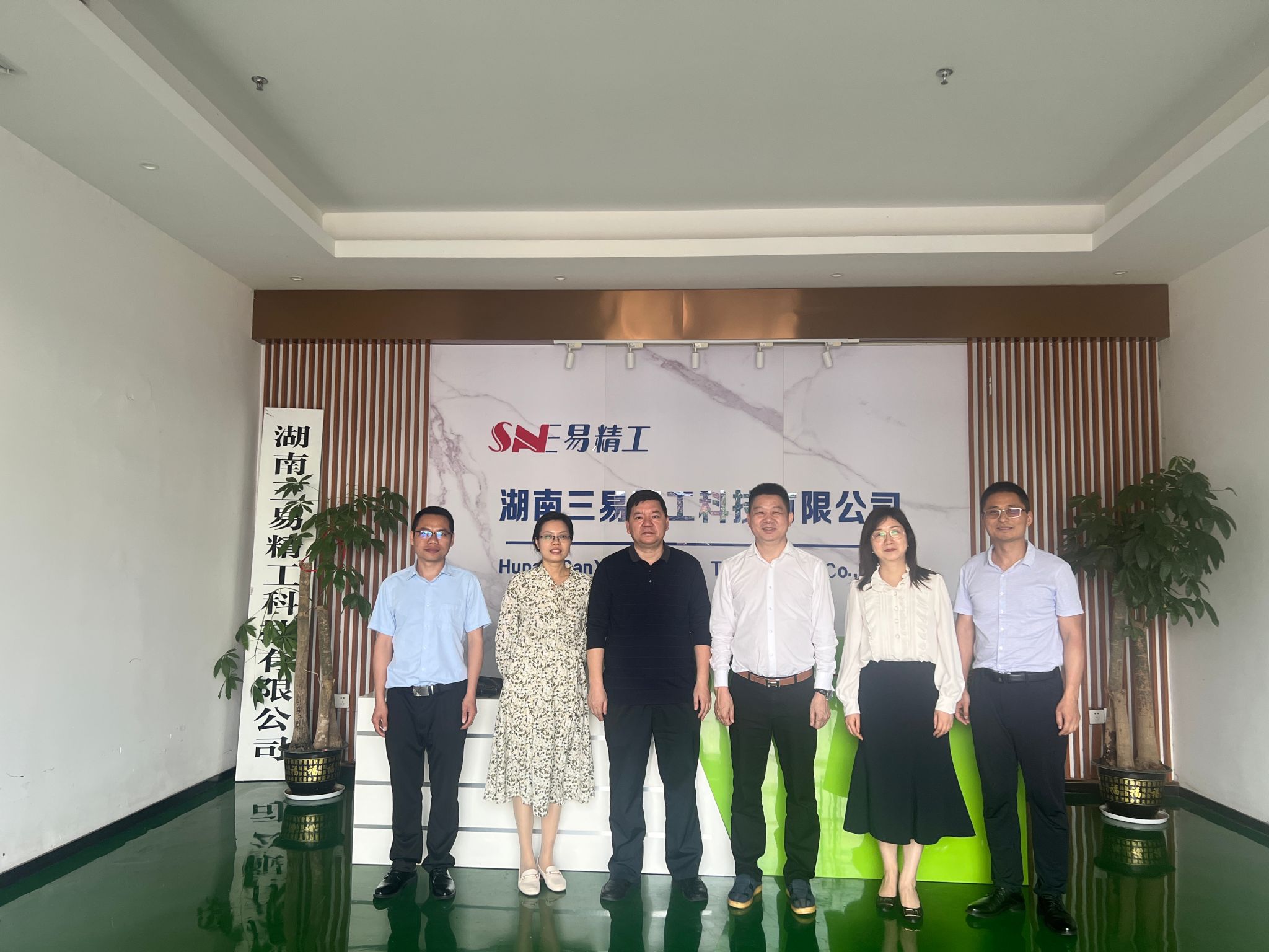 湖南三易精工科技有限公司总经理彭学秀对365官网一行表示热烈欢迎,亲自带领参观了研发室、生产车间和检测室等。