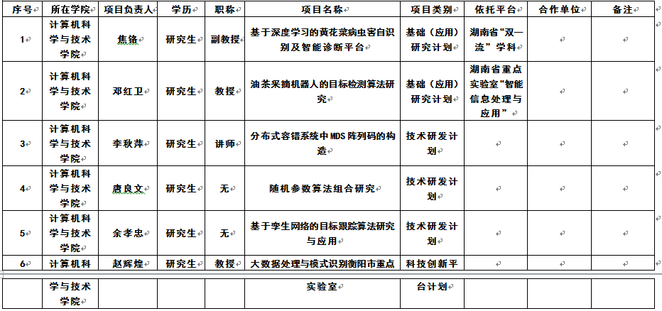 根据学校《关于申报2021年衡阳市科技创新计划项目的通知》要求,经个人申报、学院学术委员会讨论决议,现将拟推荐至学校结果公示如下: